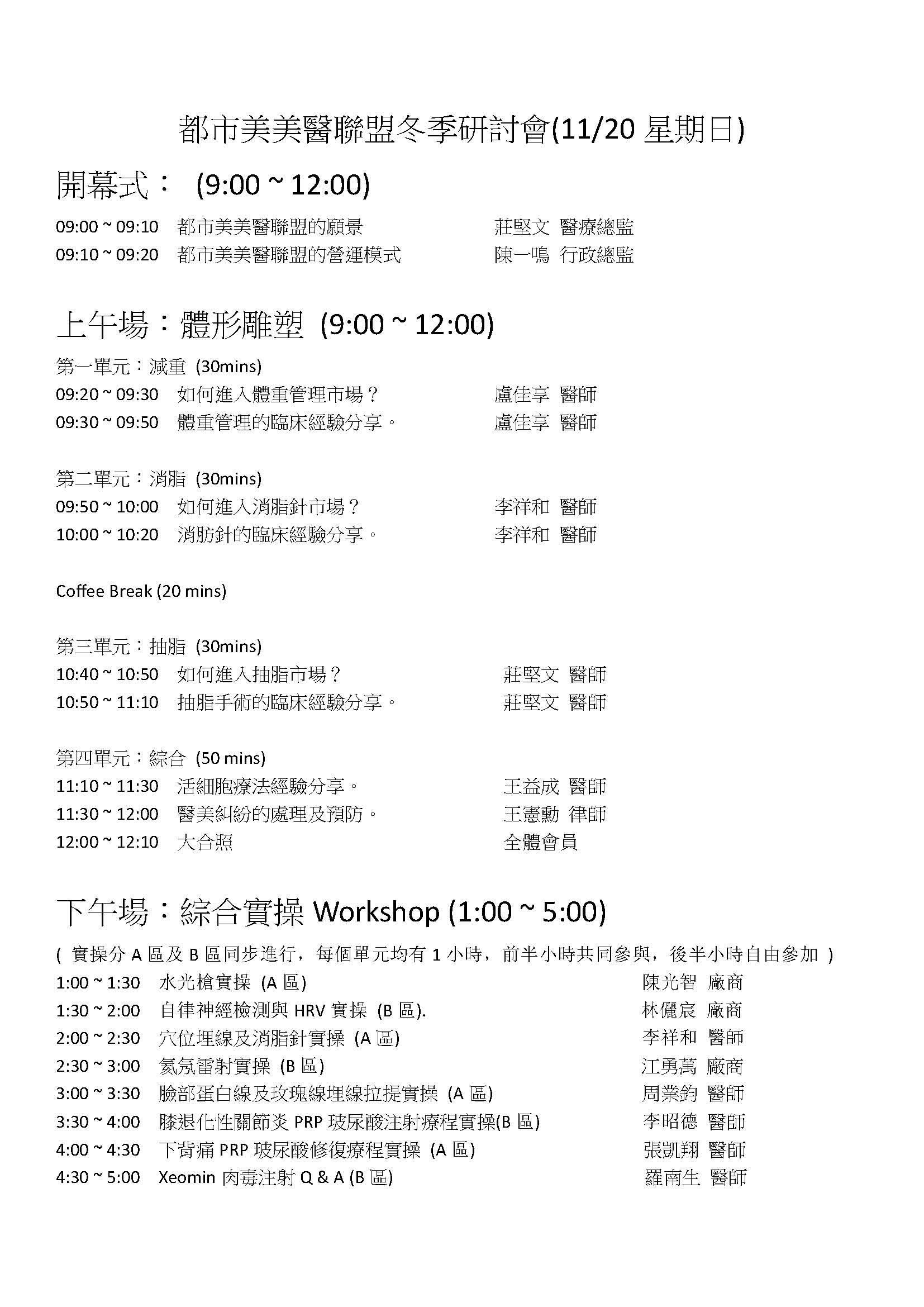 2016-11-20(星期日) 都市美美醫聯盟冬季研討會節目表 集思北科大會議中心(台北)